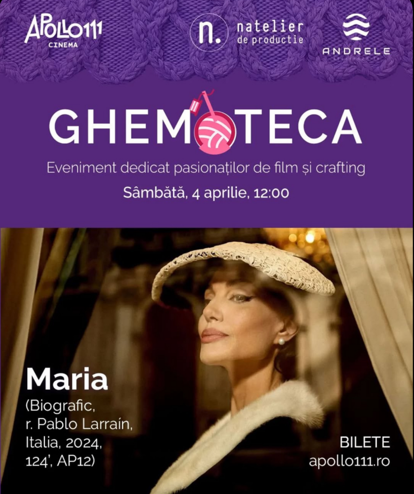 Croșetezi în timp ce te uiți la film (Maria), la Apollo 111 sau dai o țeapă la Heavy Yard – un eveniment de speed dating pentru industria de film, de la 16:30.