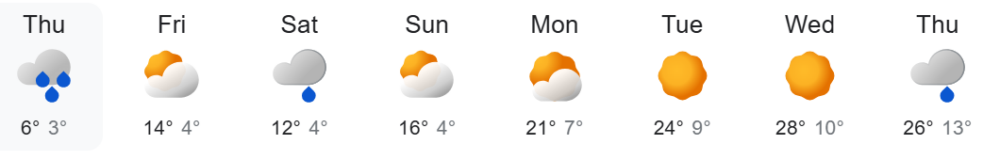 La ora la care redactez acest text real feel-ul este de zero grade, iar orașul este total dezagreabil, cu tradiționalele bălți care se formează după fiecare ploaie mai zdravănă. În weekend avem maxime de 12-16 grade, iar peste câteva zile maxima se dublează.
