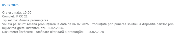Știrea inițială: Judecătorii Tribunalului București ar trebui să ia vineri, 6 februarie, o decizie cu privire la cererea de recuzare, după ce instanța a amânat pronunțarea la termenul de astăzi.