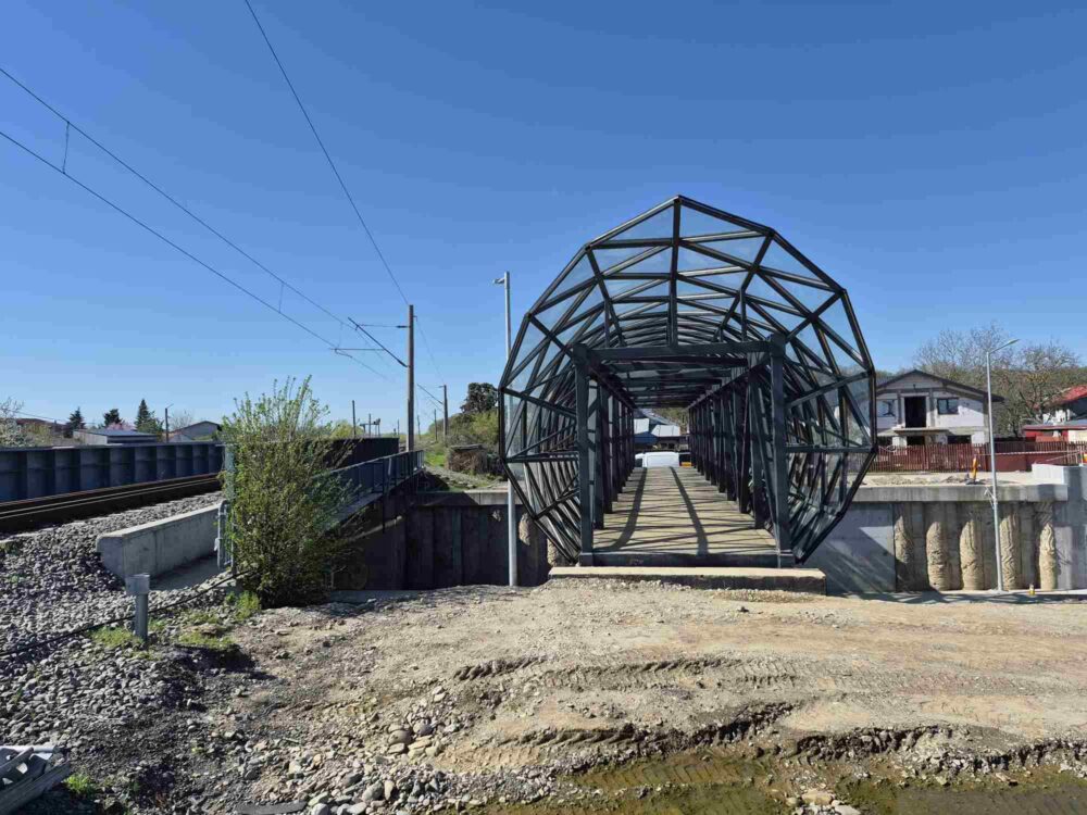 Șantierul este într-un stadiu avansat: pasarela pietonală cu o lungime de 26 de metri și o lățime de 2,4 metri care trece peste drumul național a fost deja montată și va fi circulabilă la jumătatea lunii mai, conform sursei citate.