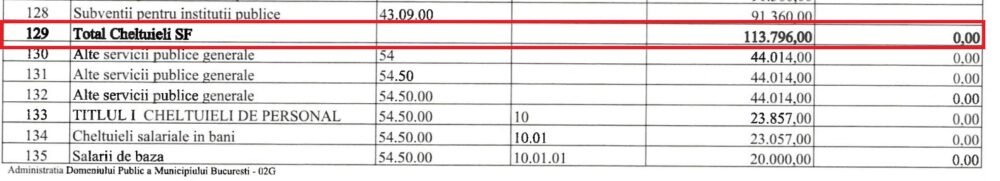 Conform documentului, mai bine de 80% din bugetul alocat pentru anul 2026 pentru Administrația Domeniului Public a Municipiului București va fi folosit pentru „Cheltuielile SF”(n.r. – secțiunea de funcționare), adică cheltuielile necesare pentru funcționarea instituției.
