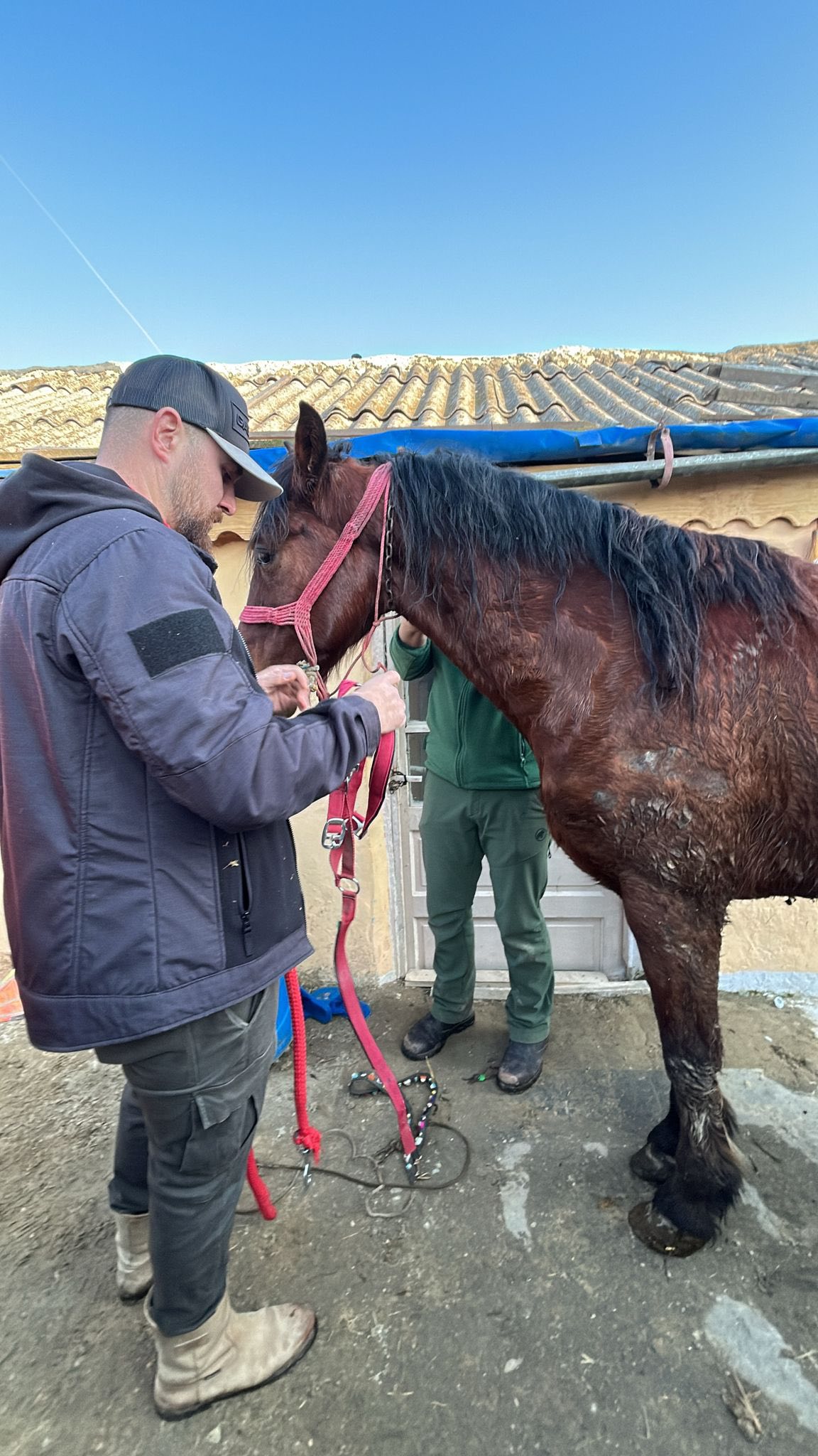 Calul abuzat, alături de un alt câine, au fost preluați de Protecția Animalelor și sunt în afara oricărui pericol.