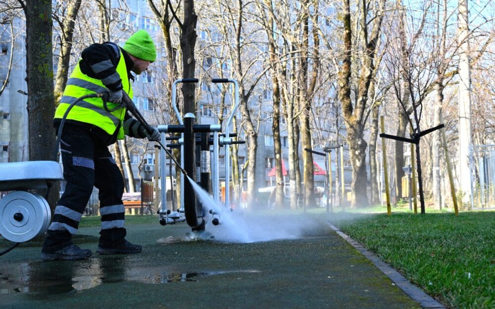 Continuă curățenia în piețele din Sectorul 1. Se intervine și la locurile de joacă