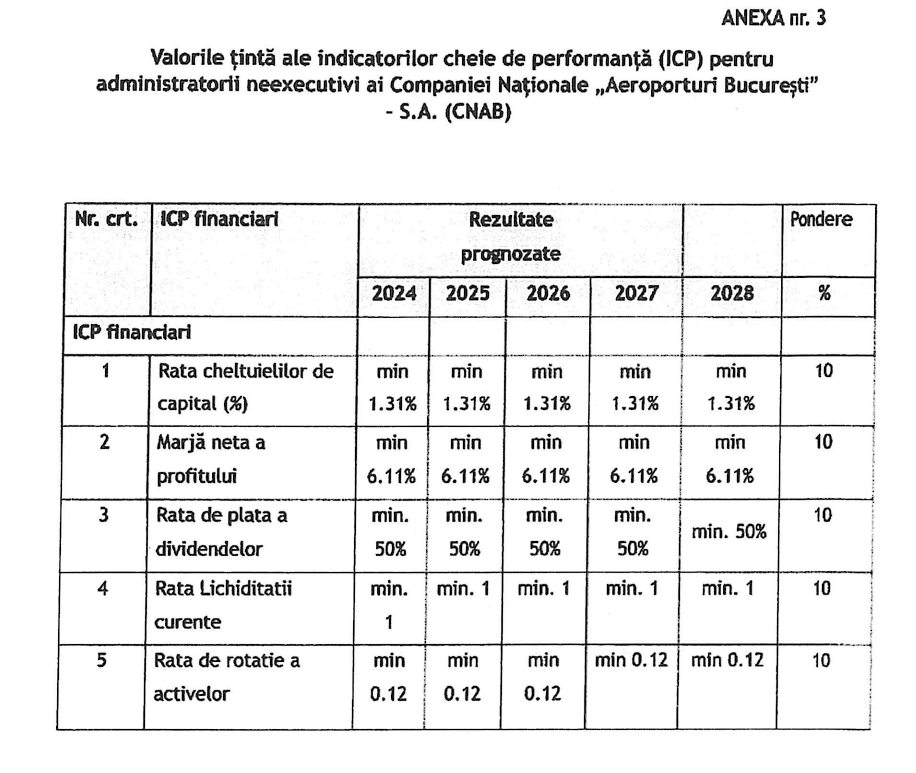 „Rata cheltuielilor de capital” are o țintă minimă de doar 1,31%. Cu alte cuvinte, compania nu este obligată să investească masiv în dezvoltare pentru ca șefii să-și încaseze banii.