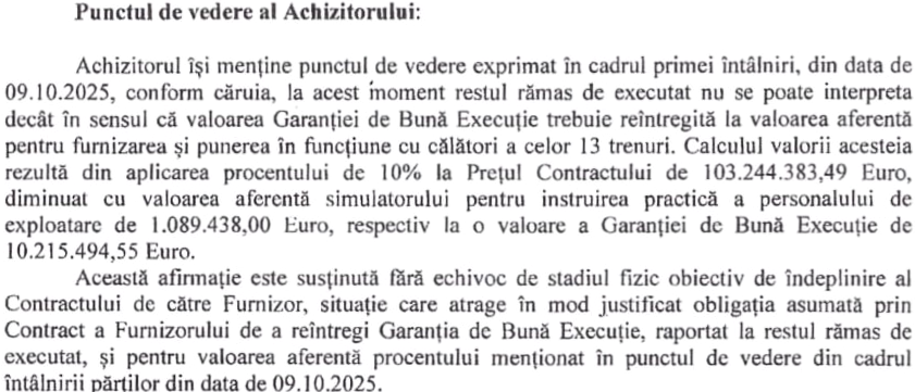 Al doilea „front” este garanția de bună execuție în valoare de 10.215.494 Euro.