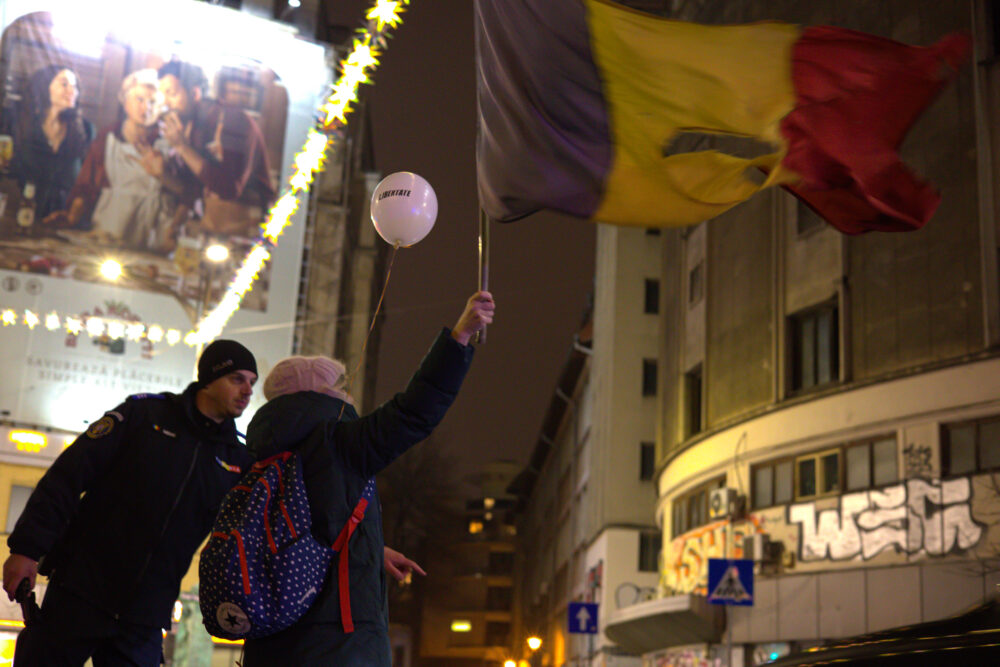 Manifestanții aveau baloane albe cu mesajul „Libertate”, steaguri tricolore și candele pentru eroii Revoluției, arată imaginile surprinse de fotoreporterii Inquam.