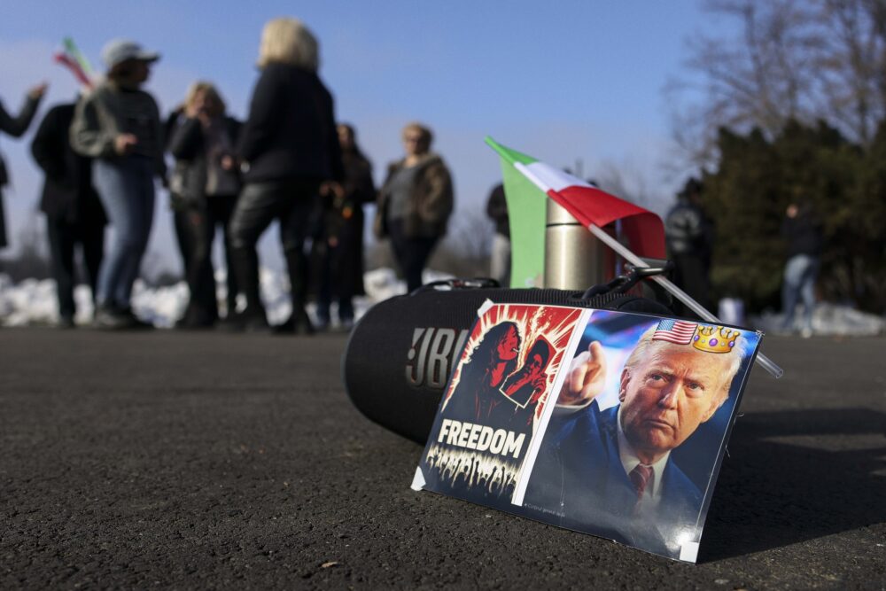 „Recuzita”, surprinsă de fotoreporterii Inquam, a inclus exclusiv steagul pre-islamic al Iranului iar afișajele au transmis o orientare pro-americană prin utilizarea sloganului Make Iran Great Again și a imaginii lui Donald Trump, cu o coroană deasupra capului.