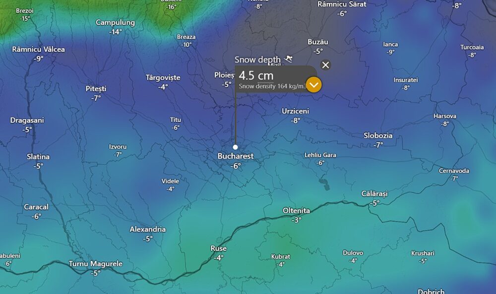 Bucureștenii nu vor scăpa prea curând de stratul de zăpadă depus în ultimele ore, iar peisajul alb riscă să se transforme într-un coșmar de gheață pentru pietoni și șoferi în următoarele zile. Potrivit datelor de la ANM și a hărților interactive windy.com, analizate de Buletin de București, urmează o săptămână cu un ger aspru, care va conserva stratul de zăpadă aflat în creștere. Prognoza exclude orice episod de încălzire semnificativă până la finalul săptămânii viitoare.