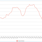 Graficul prezintă mediile aritmetice pentru ultimele 14 zile ale cazurilor raportate noi în fiecare zi. Aceste medii mai sunt cunoscute și drept „rolling averages” și au rolul de a uniformiza graficele cazurilor depistate pe zi (vezi mai sus) pentru a evidenția trendul general.
