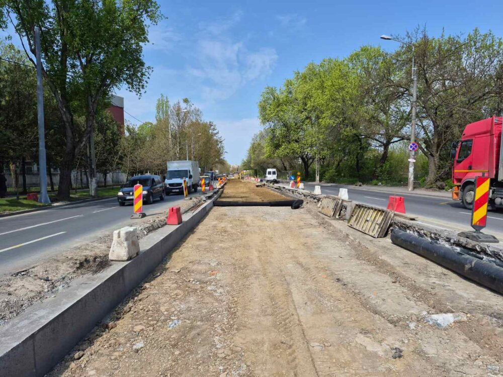 În ziua de vineri, 17 aprilie, muncitorii de pe șantierul deschis pe Chișinău se ocupă de turnarea betonului peste șinele ce au fost deja montate, operațiune ce ar urma să fie finalizată săptămâna viitoare.