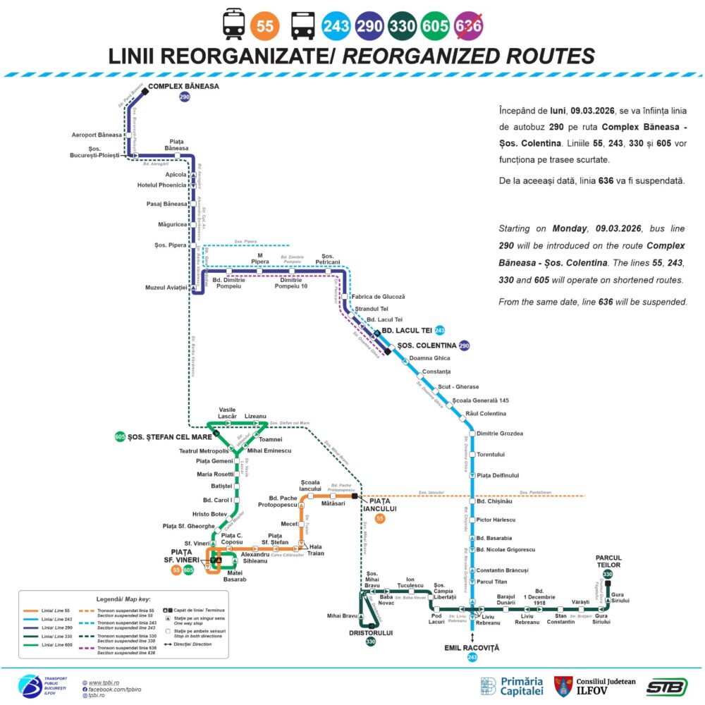 Modificările se aplică pentru optimizarea circulației în zona de nord și nord-est a Capitalei. Reorganizarea include schimbări de traseu pentru anumite lunii, precum și suspendarea liniei navetă 636.