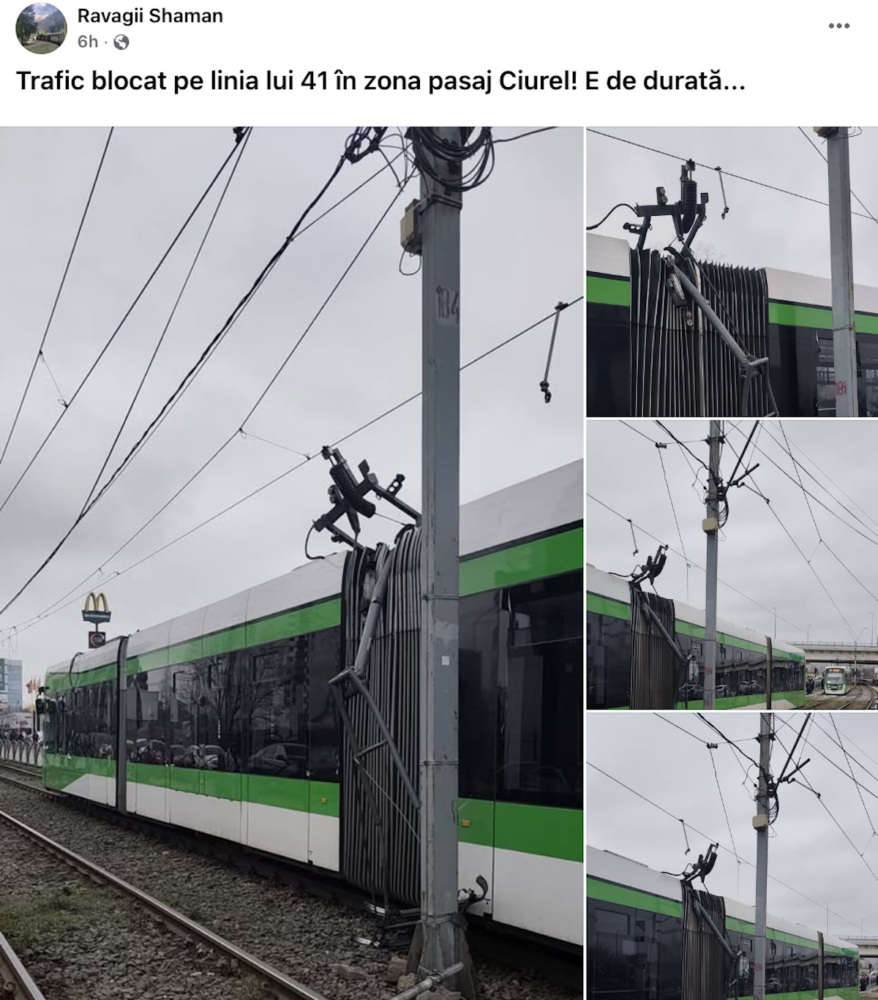 Pantograful unui tramvai nou Imperio s-a rupt pe Șoseaua Virtuții, în stația Pod Ciurel, iar circulația pe linia 41 a fost afectată timp de două ore, pe ambele sensuri, deoarece incidentul a provocat avarierea rețelei electrice de contact, a anunțat STB.