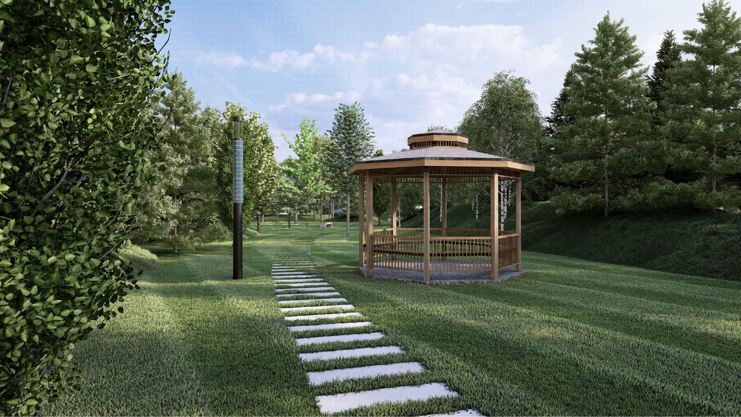 De asemenea, documentația prevede amenajarea unei fântâni cu piatră cubică, patru grătare din cărămidă, amplasate în zone dedicate și suprafețe cu dale înierbate și completări cu dale autoblocante.