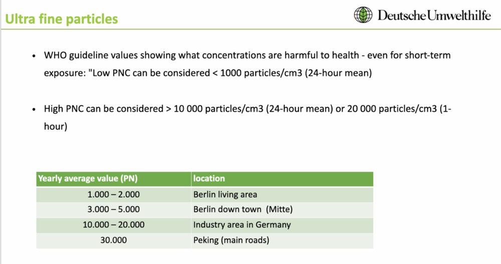 Cu toate că particulele ultrafine, cunoscute și drept nanoparticule, sunt cele mai nocive pentru sănătatea umană, acestea încă nu sunt reglementate de legislația națională. Drept urmare, autoritățile nu sunt obligate să măsoare poluarea cu particule fine, iar singurele date pe care le avem provin din măsurători independente.