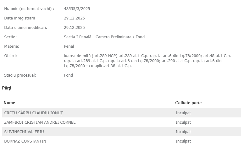 Următorul termen stabilit de instanță, pentru verificarea măsurilor asiguratorii, este 4 martie, conform informațiilor publicate pe Portal Just.