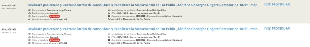 Ulterior, Primăria Capitalei, prin Direcția Generală de Arhitectură Peisagistică și Monumente de For Public, a lansat două licitații pentru restaurarea fântânii, însă ambele proceduri au fost anulate, conform informațiilor publicate în Sistemul Electronic de Achiziții Publice (SEAP).