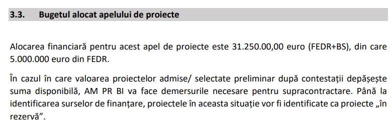 În acest context, proiectul ar urma să rămână „în rezervă” până la identificarea surselor de finanțare, se mai menționează în Ghidul Solicitantului.
