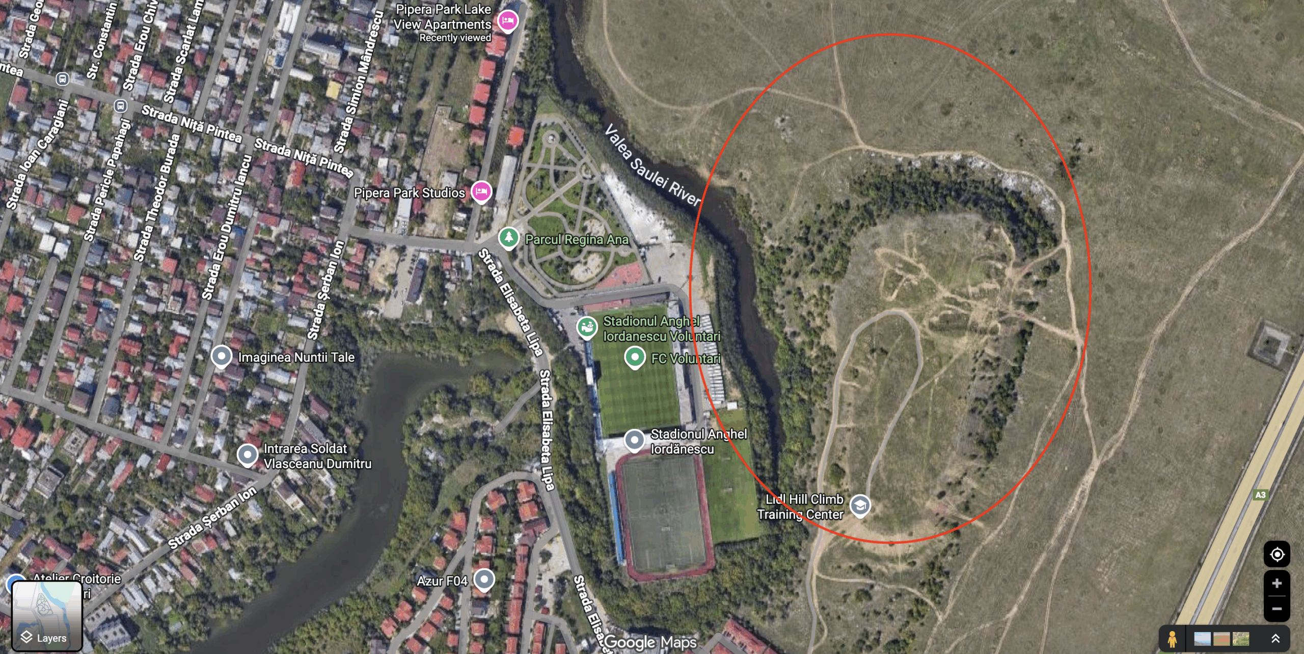 Zona vizată de proiectul primăriei condusă de Florentin Pandele se află peste drum de stadionul echipei FC Voluntari, finanțată din banii publici ai locuitorilor din Voluntari.