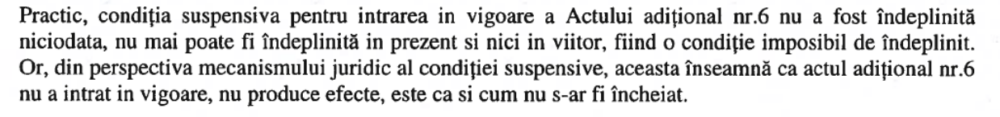 Practic, operatorul de salubrizare susține că această condiție nu a fost niciodată îndeplinită, iar Actul Adițional nr. 6 nu a intrat niciodată în vigoare.
