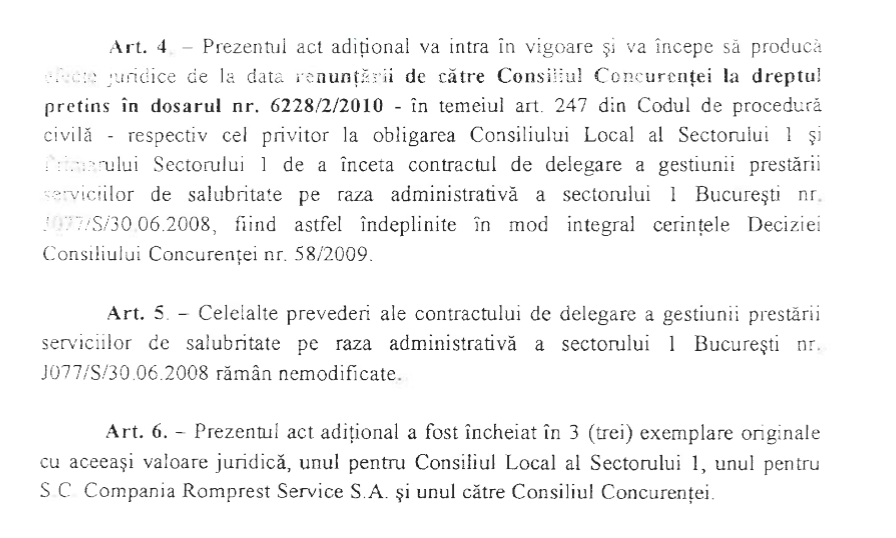 Contractul dintre Rompres și Primăria Sectorului 1 a fost semnat în anul 2008, pe o perioadă de 25 de ani. Cu toate astea, în anul 2009, în baza unor investigații făcute de Consiliul Concurenței la primăriile din București, autoritatea a decis că perioada contractuală este nejustificat de mare.