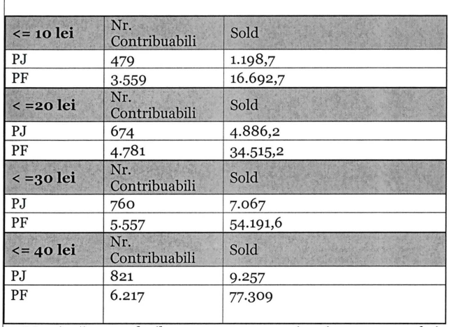 Valorile sunt estimative și vor suferi schimbări până la 31 decembrie 2025, ca urmare a plăților voluntare, a compensărilor din oficiu sau a recuperării prin executare silită, precizează documentul consultat de Buletin de București.