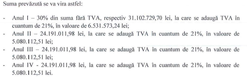 Având în vedere că indicatorii tehnico-economici au fost aprobați anul trecut, costurile au fost calculate cu TVA de 19%.