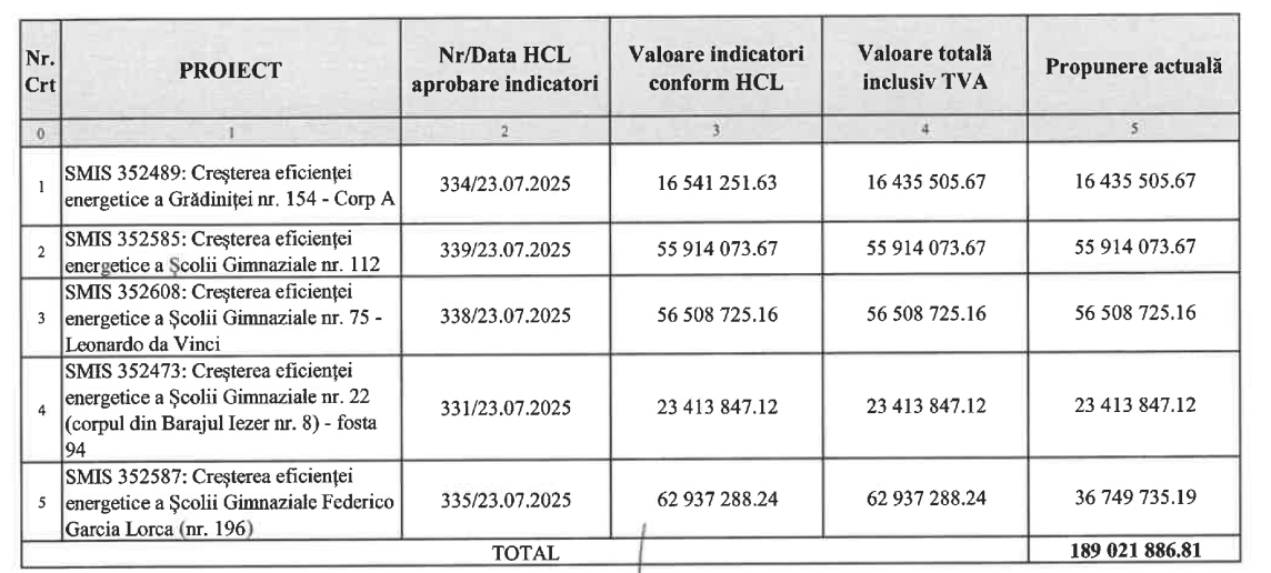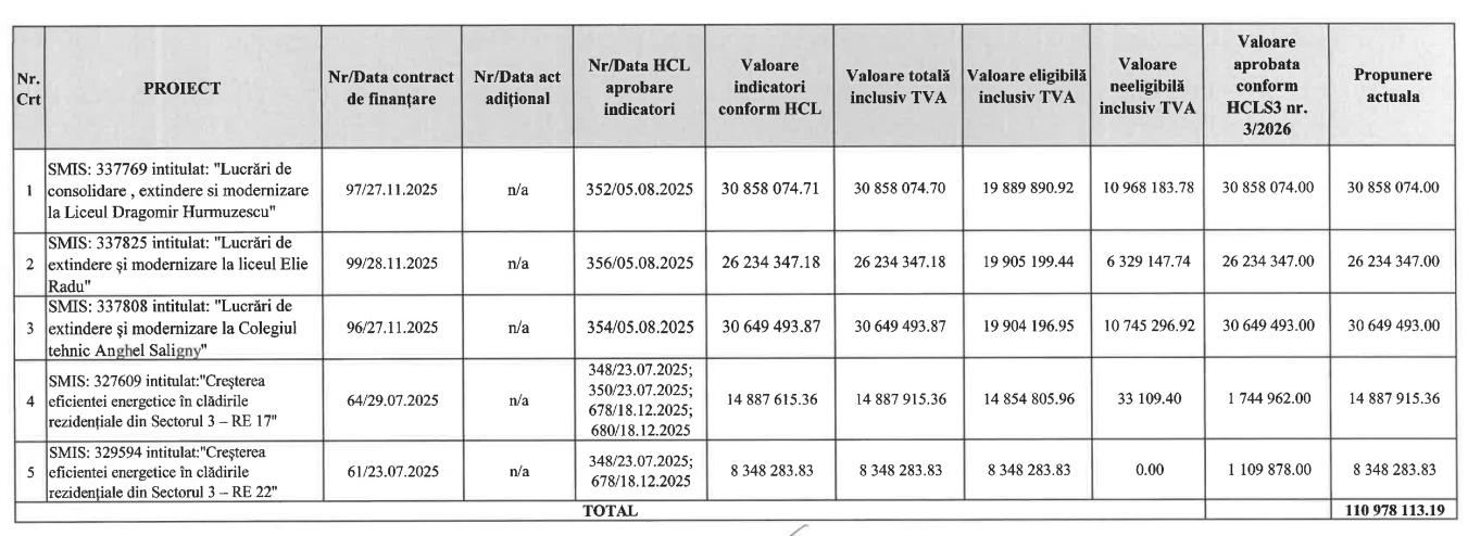 Fondurile ar urma să fie folosite pentru modernizarea a opt unități de învățământ, precum și pentru reabilitarea termică a blocurilor din Sectorul 3.