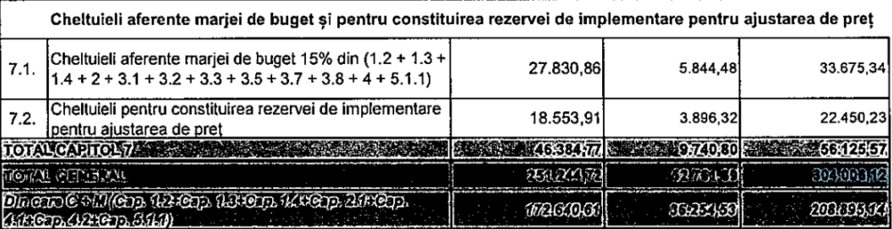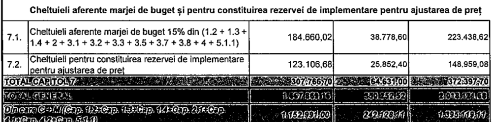 O diferență semnificativă de calcul se poate observa și în cazul proiectului „Alex Obregia 25, bl I 4A+R11”, unde totalul general din deviz este de 2.018.121,66 lei, în actualul proiect de hotărâre. În 2025, totalul general era de 382.795,795 lei.