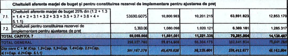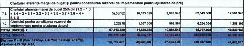 În cazul proiectului de reconfigurare Terasei 1, 3 ,5 – Străduinței D1, D2, D3, E3, devizul pentru lucrări de construcții și montaj (C+M) a fost calculat la 626.844,321 lei lei în 2025. În devizul actual, acesta a fost recalculat la 939.848,52 lei.