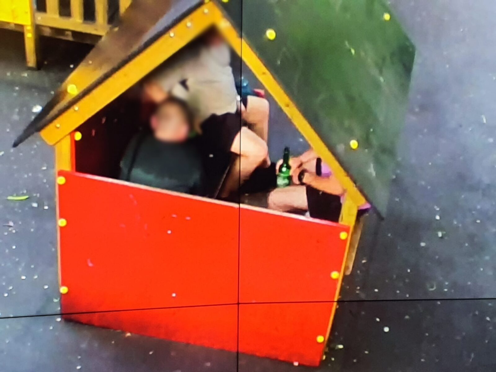Problema este că aleg ca loc pentru refugiul lor părculeţele şi locuri de joacă unde sunt băncuţe. Mai mult, aşa cum se vede în fotografia de mai sus, sunt adulţi care se strâng în căsuţele amenajate pentru copii, la respectivele locuri de joacă.