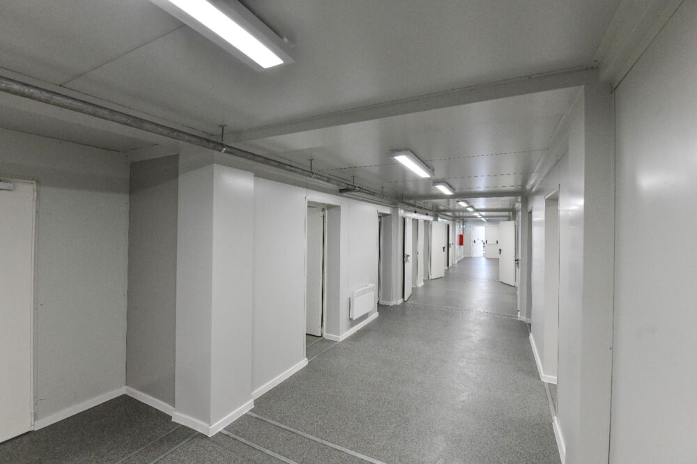Unitatea de învățământ provizorie este construită din profile de tablă zincată și panouri „sandwich termoizolate”. La parterul clădirii modulare se află patru săli de clasă, secretariatul, cancelaria, cabinetul medical biroul directorului și două grupuri sanitare pentru persoane cu dizabilități, dar și grupuri sanitare pentru fete și băieți.