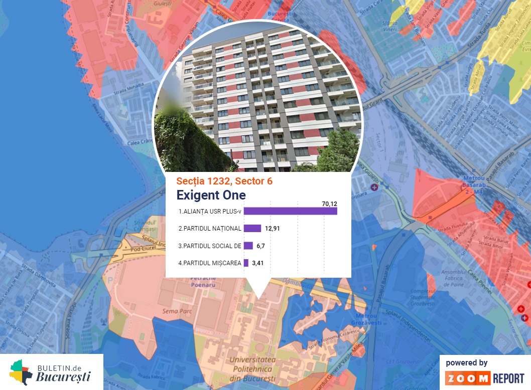 Secția 1232, unde USR PLUS a avut cel mai mare scor, are arondate majoritatea căminelor din Complexul Studențesc Regie, fapt care ar putea explica diferența foarte mare în favoarea USR PLUS, dar mai are o particularitate: are arondate nu mai puțin de 4 ansambluri rezidențiale nou construite.