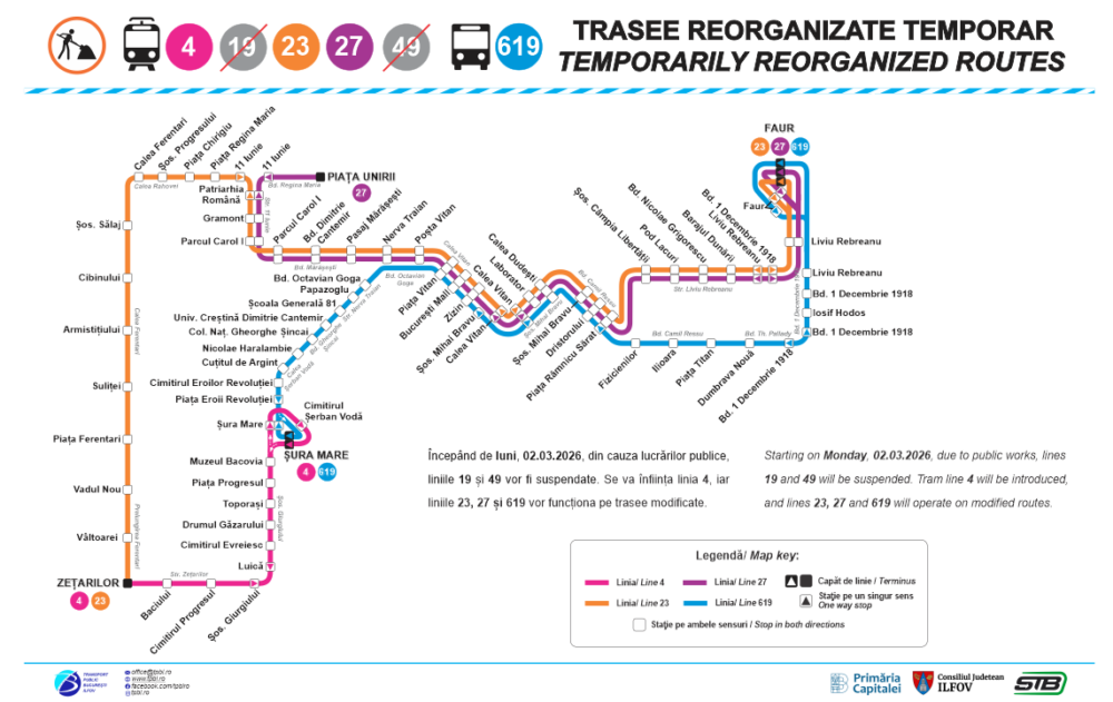 Asociația de Dezvoltare Intercomunitară pentru Transport Public București – Ilfov (TPBI) a anunțat că mai multe linii de tramvai și de autobuz vor fi organizate de luni, 2 martie, potrivit unui comunicat.
