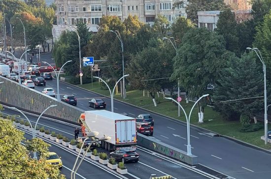 Un TIR a rupt poarta de protecție de la Pasajul Unirii. Circulația e blocată pe un sens