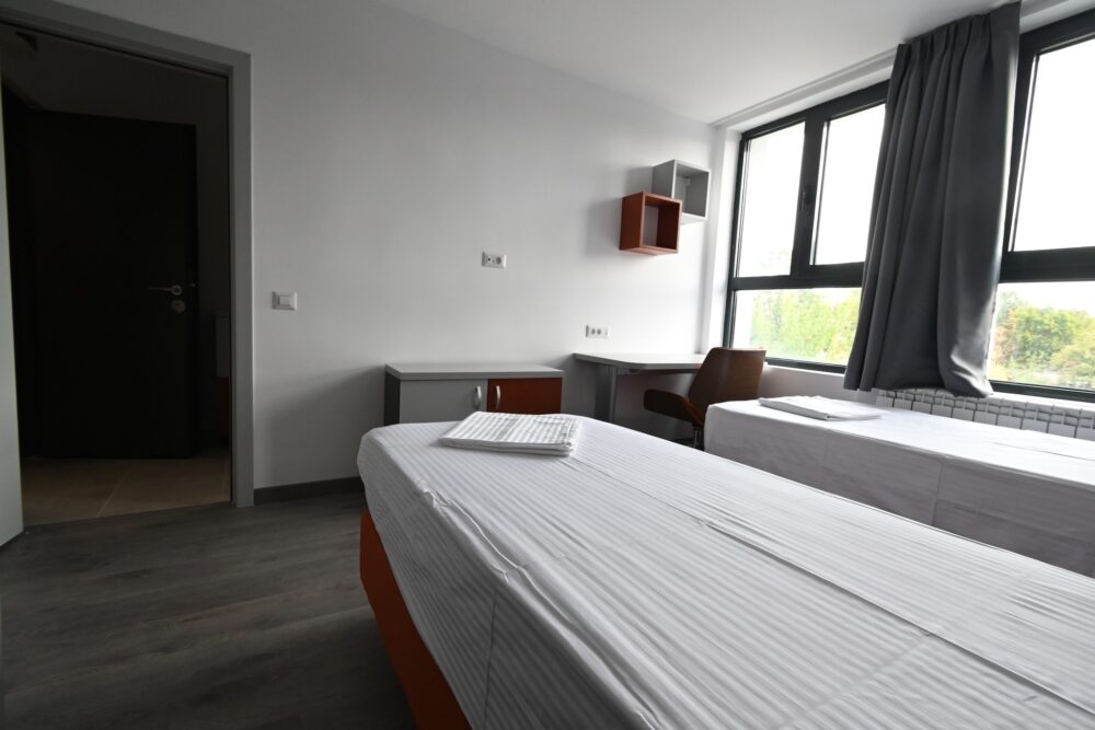 - 276 de locuri de cazare, camere cu mobilier nou, grup sanitar propriu, frigider și aer condiționat;