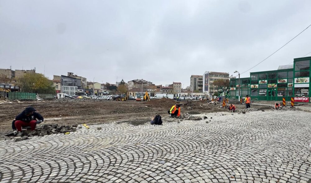 Lucrările din Piața Matache: se pun pavele. Foto: PS1
