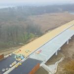 Utilajele UMB sunt concentrate pe structura mamut care traversează Lacul Cernica. Imaginile aeriene surprinse recent arată finalizarea procedurilor de montare a segmentelor de tablier metalic.